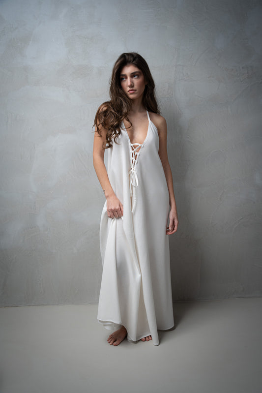 Utilizamos materiales naturales como lino y algodón, y solo colaboramos con personas que priorizan el cuidado de la Tierra y sus habitantes.